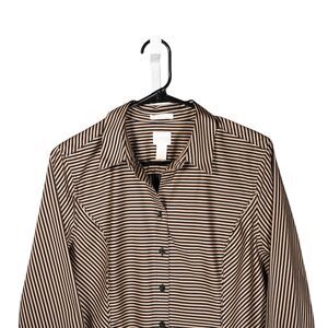 Chico's Women's Shirt Button Up Beige Black Striped Long Sleeve Blouse Top 1 M/8