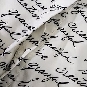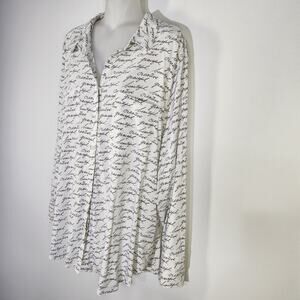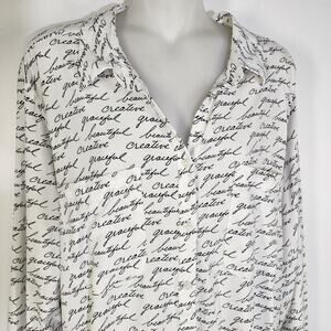 Chicos Womens Shirt Button Up Long Sleeve White Black Graphic Script US 16/18