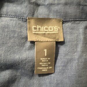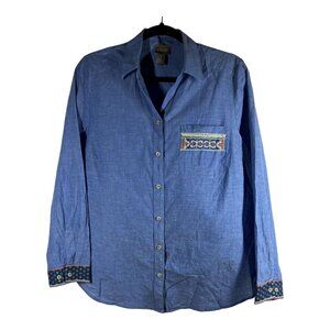 Chico’s Chambray Women Blue Button-Up Pocket Embellished Shirt Size 1 / small