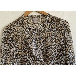 Chico's Womens Shirt Size 1 8/10 Animal Print Ruffle Hidden Button Down Long Sleeve