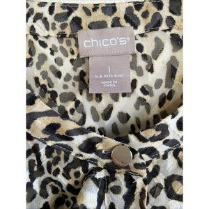 Chico's Womens Shirt Size 1 8/10 Animal Print Ruffle Hidden Button Down …