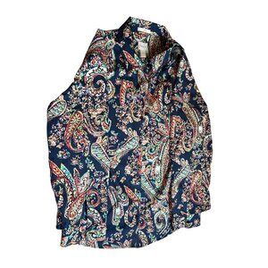 Chicos Womens Shirt Small Multicolor No-Iron Cotton Paisley Button-Up Boho Retro