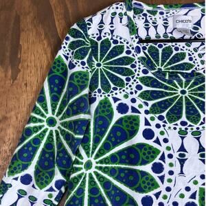 Chicos Womens Shirt White Multicolor Abstract Print Round Neck Stretch 1 (M)