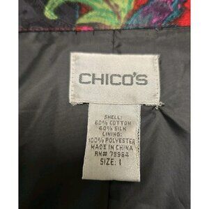 Chicos Womens Silk Blend Blazer Jacket Size 1/ Medium Red Bold Print