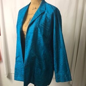 Chico’s Women’s Silk Teal Jacket Open Front Decorative Stitching Size M