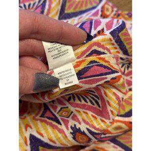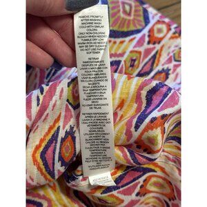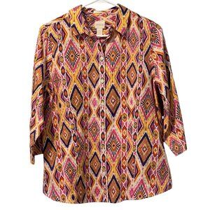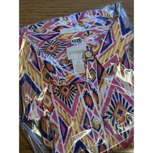 Chicos Womens Size 0 Linen No Iron Button Up Shirt 3/4 Sleeve Aztec Colorful