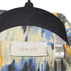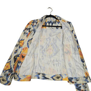 Chicos Womens Size 0 S/4 Ikat Jacket Linen Southwestern Abstract Watercolor Art