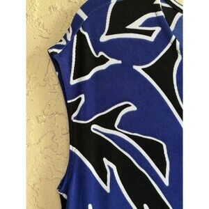 Chest 41 inch, Length 33 inch, Chicos Womens Size 1 (8-10) Stretch abstract Print Black Blue White Dress Midi