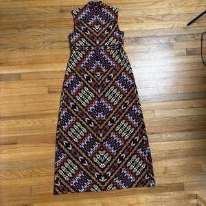 Chico's Women's Size 1 Maxi Dress Black Multicolor Sleeveless Knit Southwest