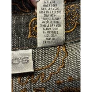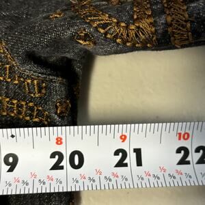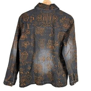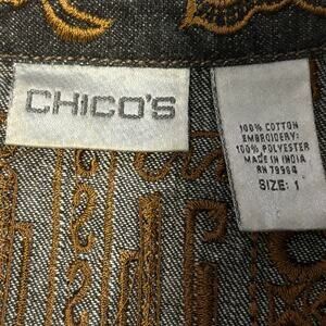 Chico's Women's Size 1 Gold Embroidered Tribal Pattern Black Denim Jacket