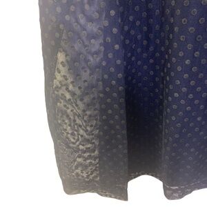 Chico’s Women’s Size 1 (M) Navy Flocked Polka Dot Round Neck Long Sheer Sleeves