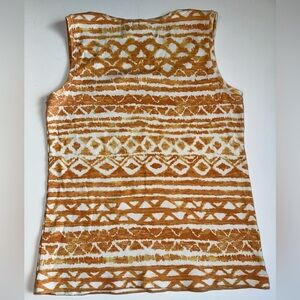 Chico’s women’s tank top in a vibrant orange and white pattern. Stretch cotton blend for comfort and ease of movement. Great for layering or casual summer wear.