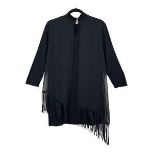 Chico's Womens Size 1 Medium Black Asymmetrical Fringe Overlay Mock-Neck Top NEW