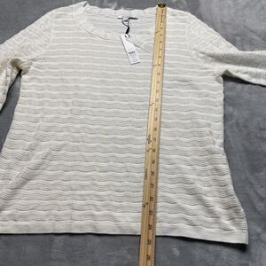 Elegant and effortless, this Chicos textured pullover sweater adds a touch of sophistication to any outfit. Crafted from a soft knit fabric with a subtle wave pattern, it offers both comfort and style for everyday wear or special occasions.