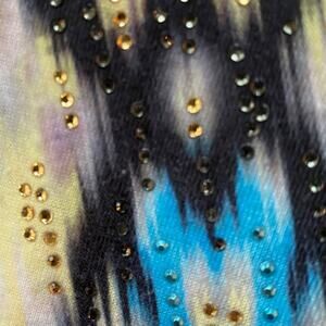 Chicos Womens Size 1 Medium Short Sleeve Multi Color Embellished Side Tie Tee