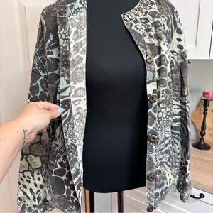 Elevate your career wardrobe with this bold and stylish Chico's animal print button-up jacket!