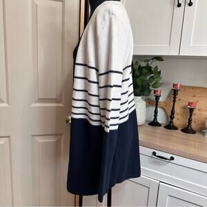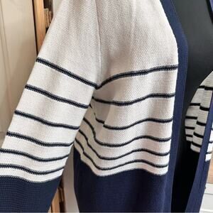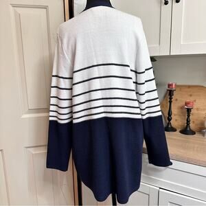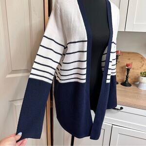 Chico's Women’s Size 1 US 8 Medium M Blue White Open Cardigan Capsule Wardrobe