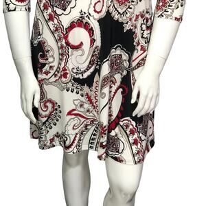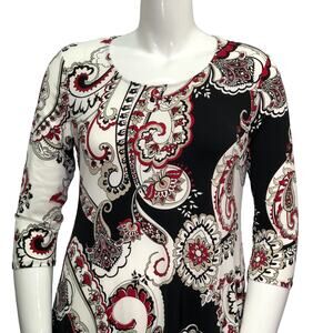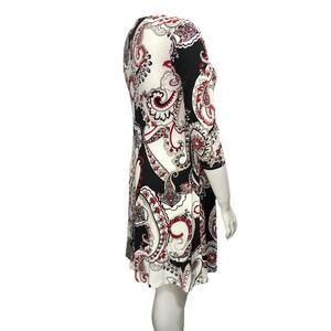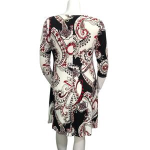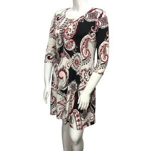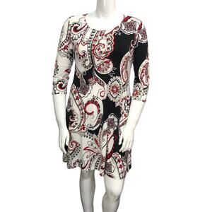 Chicos Womens Size 1 US 8 Shift Dress Stretch Paisley Knit Swing 3/4 Sleeves