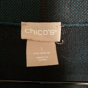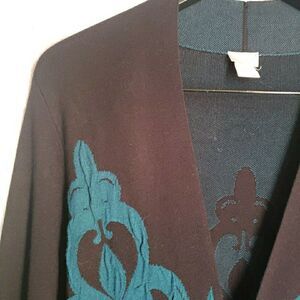 Chicos Women's Size 1 US M Textured Jacquard Print Long Cardigan Black Blue Knit
