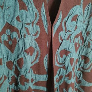 Chicos Women's 1 US M Textured Jacquard Print Long Cardigan Black Blue Knit