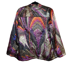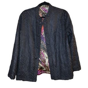 Chico's Womens Size 10 Reversible Satin Button-Up Blazer Cardigan Multicolor