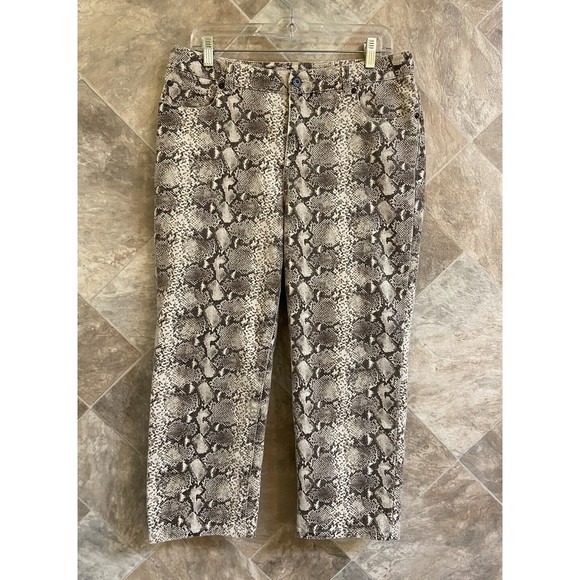 Chico’s Women’s Size 10 White Python Print High-Rise Cropped Ankle Slim Jeans
