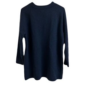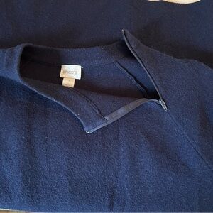 Navy Blue long sleeve sweater with zippered neck at the side of the neck. Made of 50% cotton, 40% acrylic and 10% wool. Machine washable.