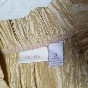 Chico's Womens Size 2 Gold Pleated Crinkle Open Front Cardigan Blazer Jacket