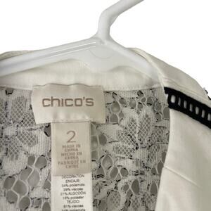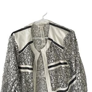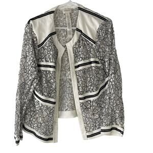 Chico's Women's Size 2 Medium White Open Floral Cardigan Sweater