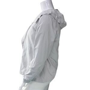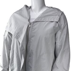 Chicos Womens Size 2 US 12 Large Gray Full Zip Jacket Oversized Hood Nylon Blend