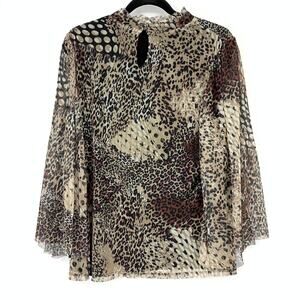 Chico's Women's Size 2 US L Animal Print Top Blouse Flared Sleeve Multicolor