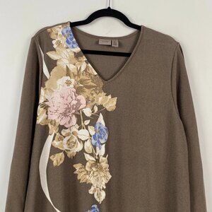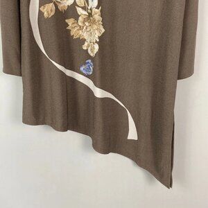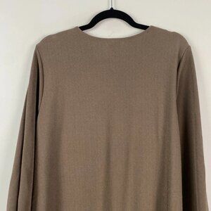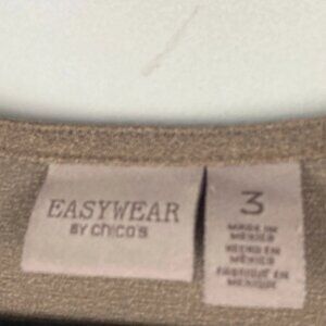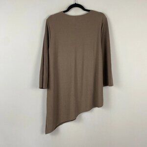 Chicos Easywear Asymmetric Tunic Size 3 US XL Taupe Brown V Neck 3/4 Sleeves