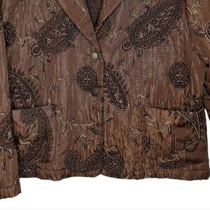 Chico's Womens Size 3 Brown Paisley Embroidered Jacket Blazer Coat Two Pockets