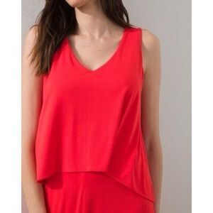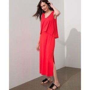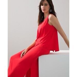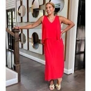 Chicos Women’s Size 3 Popover Solid Maxi Dress Red Sleeveless V Neck Slit
