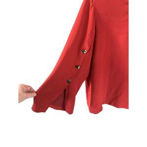 Chicos Womens Size 3 XL 3/4 Sleeve Blouse Rust Shirt Top Button Sleeve Detail Ba