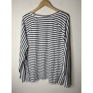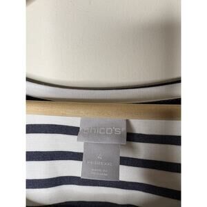 Chicos Womens Size 4 US XXL Mixed Stripe Ponte Top White Blue Striped Nautical