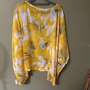 Chico’s Womens Size L/XL Yellow Floral Sheer Poncho Kaftan Kimono Sleeve Boho