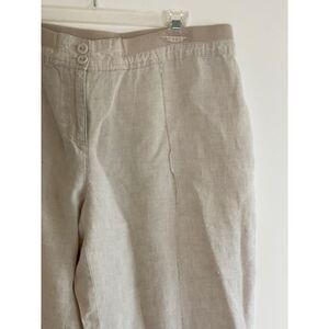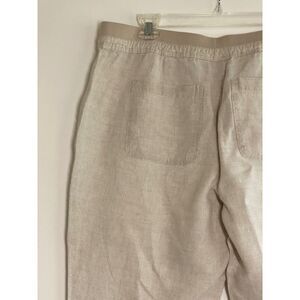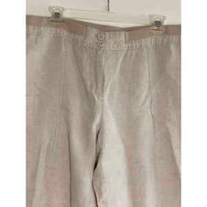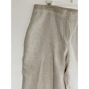 Chico's Womens Size Medium Capris 100% Linen Crop Length Wide Leg Pockets Khaki