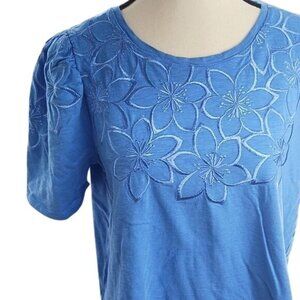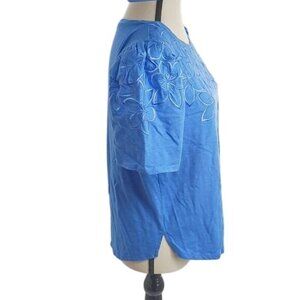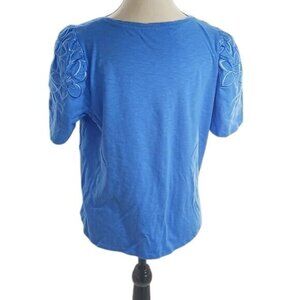 Chicos Womens Size S Blue Puff Short Sleeve Top Floral Embroidered Blouse