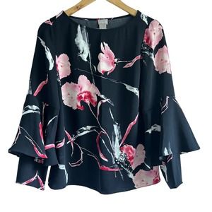Chicos Women’s Size Small Orchid Floral Tiered Sleeve Blouse Top
