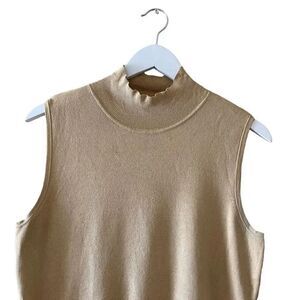 Chico’s Women’s Sleeveless Mock Neck Mustard Knit Silk Blend Tank Top 2 #1070