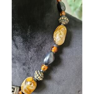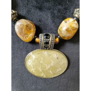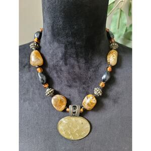 Chico's Women's Statement Beaded Necklace With Pendant And Lobster Claw Lock