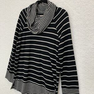 Chico's Women's Stripe Tunic Cowl Neck Lightweight Sweater Sz 1 8/10 Black Gray