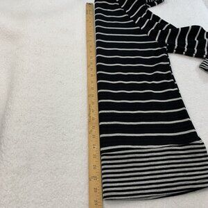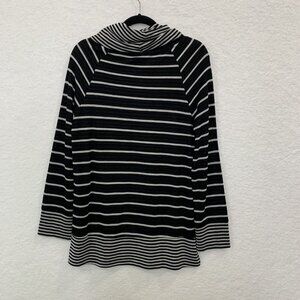 Chico's Women's Stripe Tunic Cowl Neck Lightweight Sweater Sz 1 8/10 Black Gray - Office, Casual, Travel, Packable