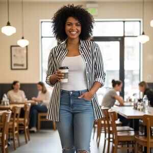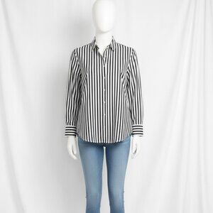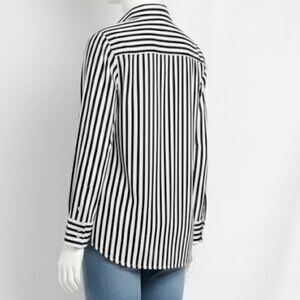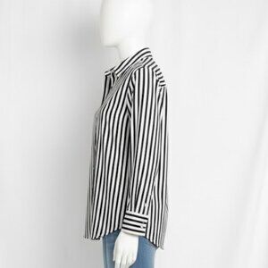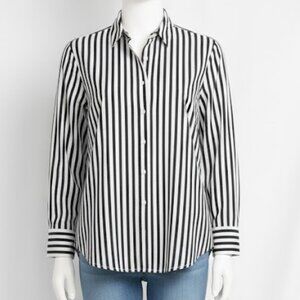 Classic and versatile! This Chico’s button-down shirt features a bold black and white vertical stripe design that elongates the silhouette. Made from their signature wrinkle-resistant, no-iron fabric — perfect for work, travel, or everyday wear.