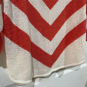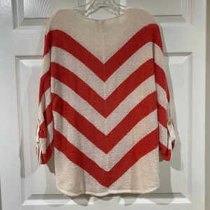 Chicos Womens Sweater 1 Small Chevron Stripe Coral Salmon Ivory Roll-Tab Dolman