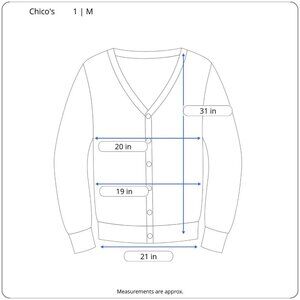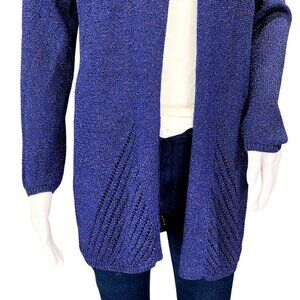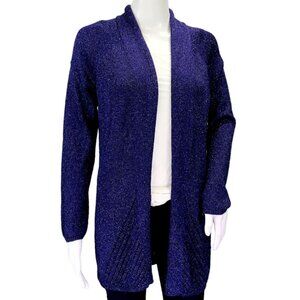 Chicos Womens Sweater Shimmering Cardigan Open Front Blue Long Sleeve Size 1 | M