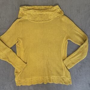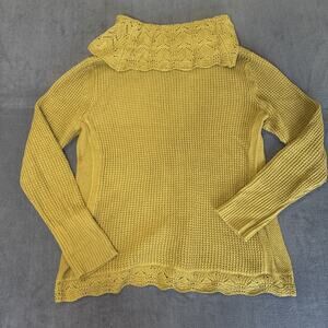 Chico's Womens Sweater Size 2 or Large Yellow Knit Turtle Neck Sweater