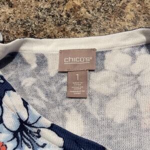 Chicos Womens Sweater Striking Floral Scoop Neck 3/4 Sleeve Blue 1 Medium 8 FN