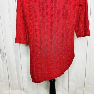 Chicos Womens Sweater Sz 2 Large Red Asymmetrical Pullover V-Neck Open-Knit